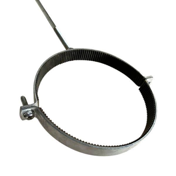 Abrazadera de 160mm con sujeción a pared, para poder trabajar en exterior el caño de desagüe. con resistencia al impacto, altas y bajas temperaturas y fluidos no convencionales. sistema de encastre seguro y fácil.