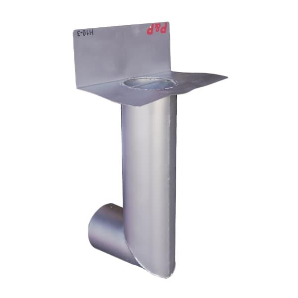 Embudo de acero inoxidable de medio plato con codo largo, ideal para colocar en los extremos de una losa para el desagote de la misma.